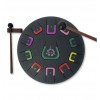 Tienen 11 notas diferenciadas por números y colores que emiten sonidos armónicos relajantes que se pueden tocar con baquetas, con las púas de dedos o con las manos y de cada manera se producirá una intensidad de sonido distinta.