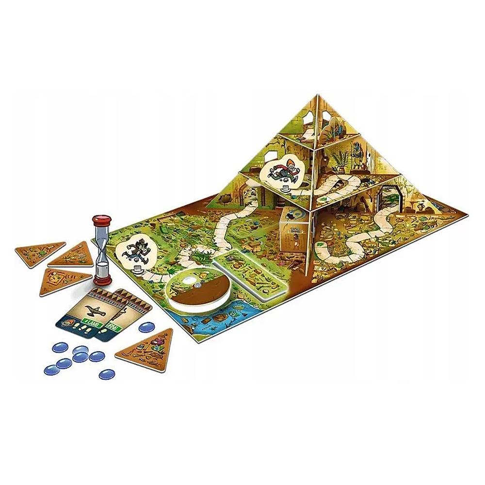 La legendaria pirámide de Treflhotep IV ha salido a la luz… ¡y el malvado Doctor Moritz quiere quedarse con todo el tesoro! Por suerte, los exploradores han llamado al mejor detective del mundo: Spy Guy. Tu misión será guiarlo por un tablero tridimensional lleno de trampas y secretos, resolviendo retos de observación y lógica para encontrar pistas antes que el villano. Pero cuidado: cada pista que descubras puede ocultar otra. ¡Solo los más atentos lograrán llegar a la cámara del tesoro a tiempo! Un juego colaborativo para 1 a 4 jugadores, ideal para niños a partir de 5 años, que combina aventura, estrategia y trabajo en equipo.