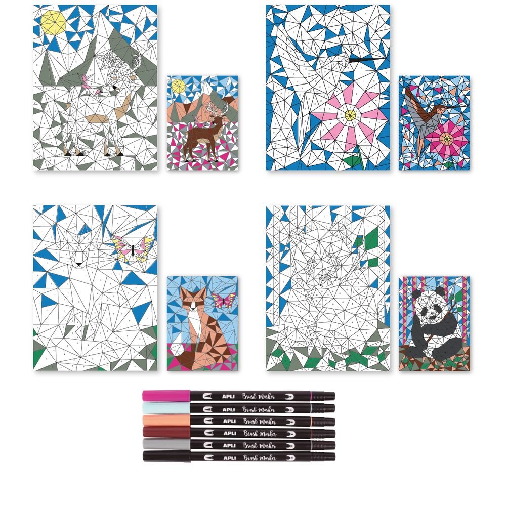 Este set incluye láminas con ilustraciones numeradas y rotuladores de doble punta, ideales para colorear con precisión y sin esfuerzo: una punta fina para los detalles y otro tipo pincel para rellenar superficies con facilidad.