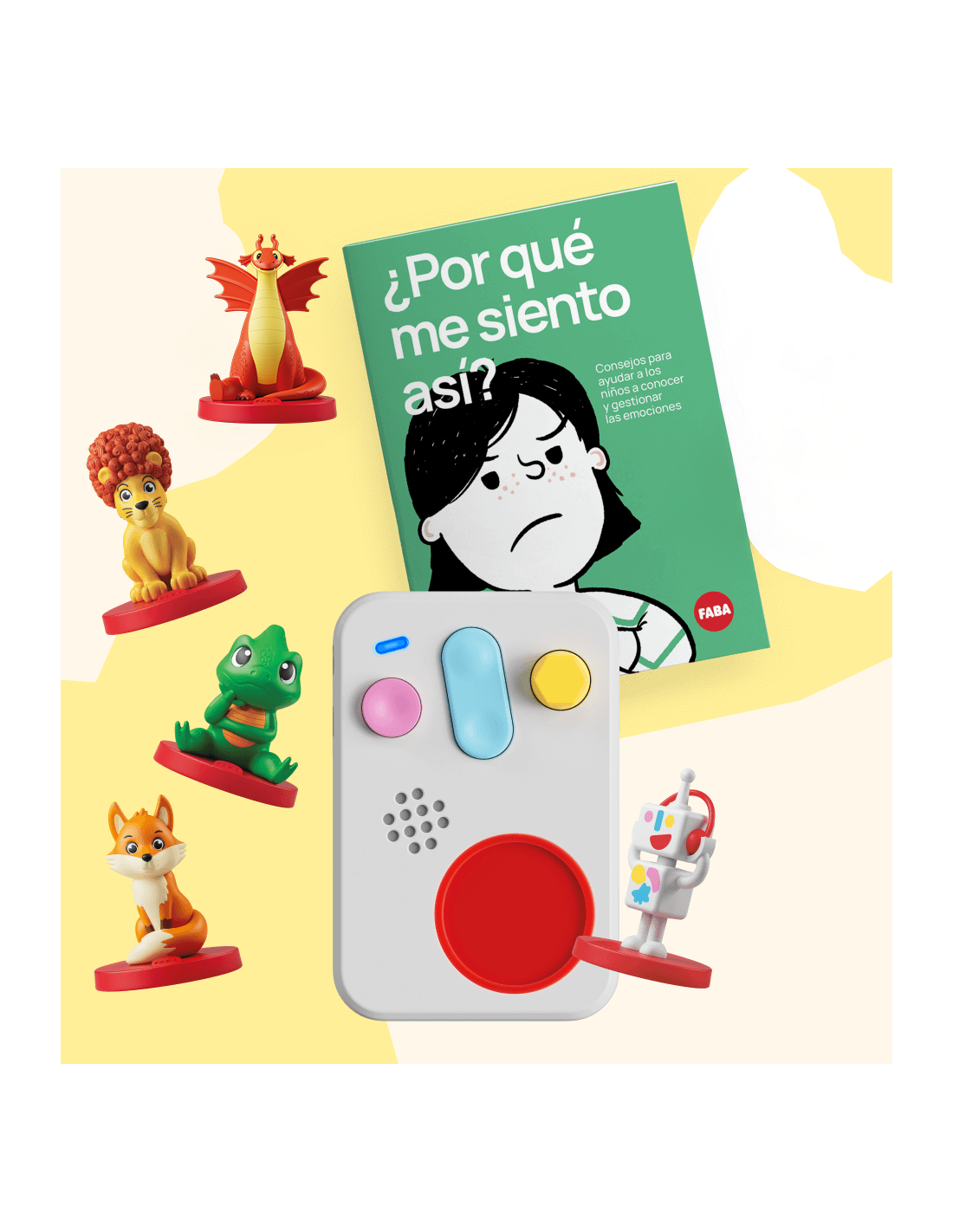 Acompañados de historias y músicas, los más pequeños podrán explorar sentimientos como la alegría, la tristeza, la rabia y el miedo de forma divertida y cercana. Incluye 3 Personajes Sonoros FABA, cada uno con un enfoque diferente para guiar a los niños en la exploración emocional, además del FABA+ Starter Set para comenzar a disfrutar de inmediato.